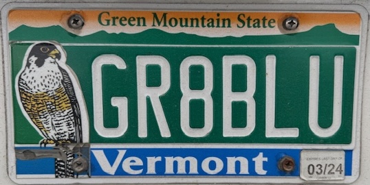 I have been taking photos of birder license plates for over a decade. Recently, I saw a couple of Vermont plates so here they are.