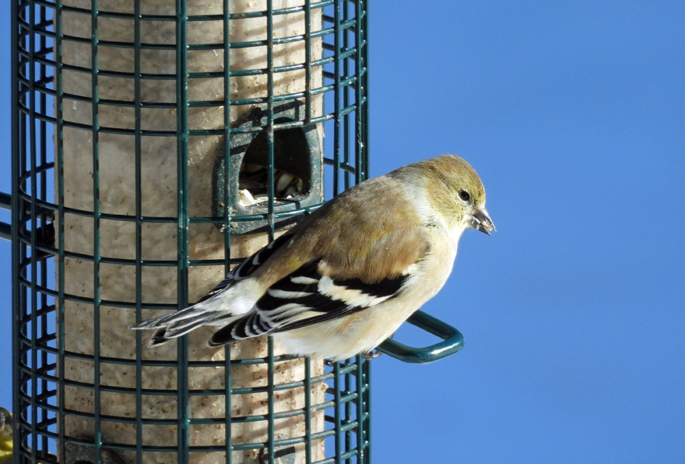 The weather has been cold, windy, and snowy – not the best environment for learning to use a new rig. So, I decided to shoot birds at the feeder through the glass storm door. Here are some of the usual suspects that are going through a lot of bird seed and suet.