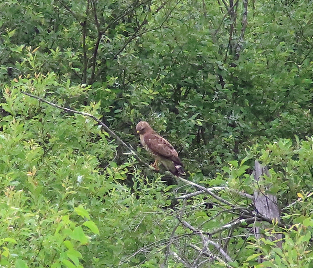 And then, as I was heading out, seven small diving ducks flew in. They were juvenile Hooded Mergansers. They settled for a rest stop and likely headed out shortly later.