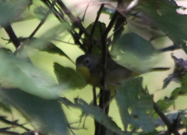 Here’s a young Common Yellowthroat hiding in the bushes.  They constantly move and are a real challenge for me to digiscope.